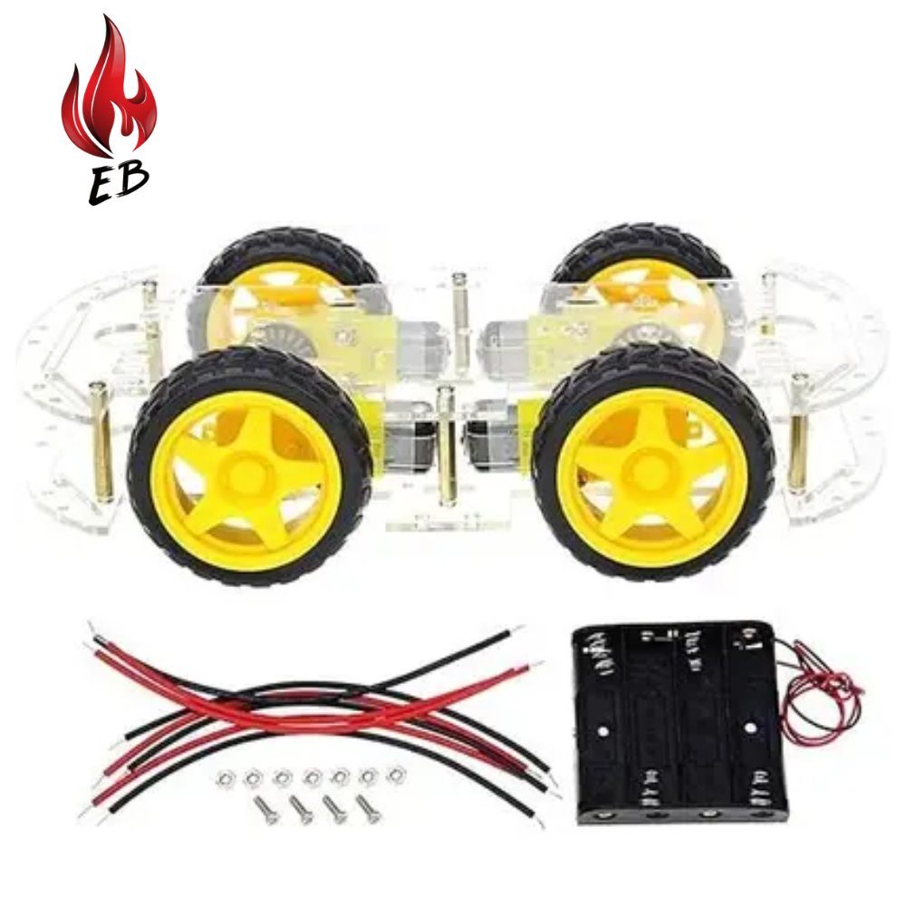 The 4-wheel drive (4WD) design provides better traction, stability, and balanced movement on different surfaces. Each wheel is powered by a high-quality DC gear motor equipped with a speed encoder, allowing accurate speed measurement, distance calculation, and closed-loop motor control. This makes the chassis ideal for advanced projects such as line-following robots, obstacle-avoiding cars, and autonomous navigation systems.